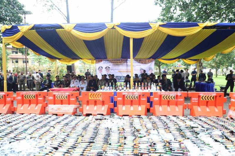 Diketahui, minuman beralkohol yang dimusnahkan merupakan bagian hasil dari razia yang dilakukan oleh Satpol PP Kota Tangerang selama satu tahun dari periode Maret 2025 hingga Februari 2026. (sin)