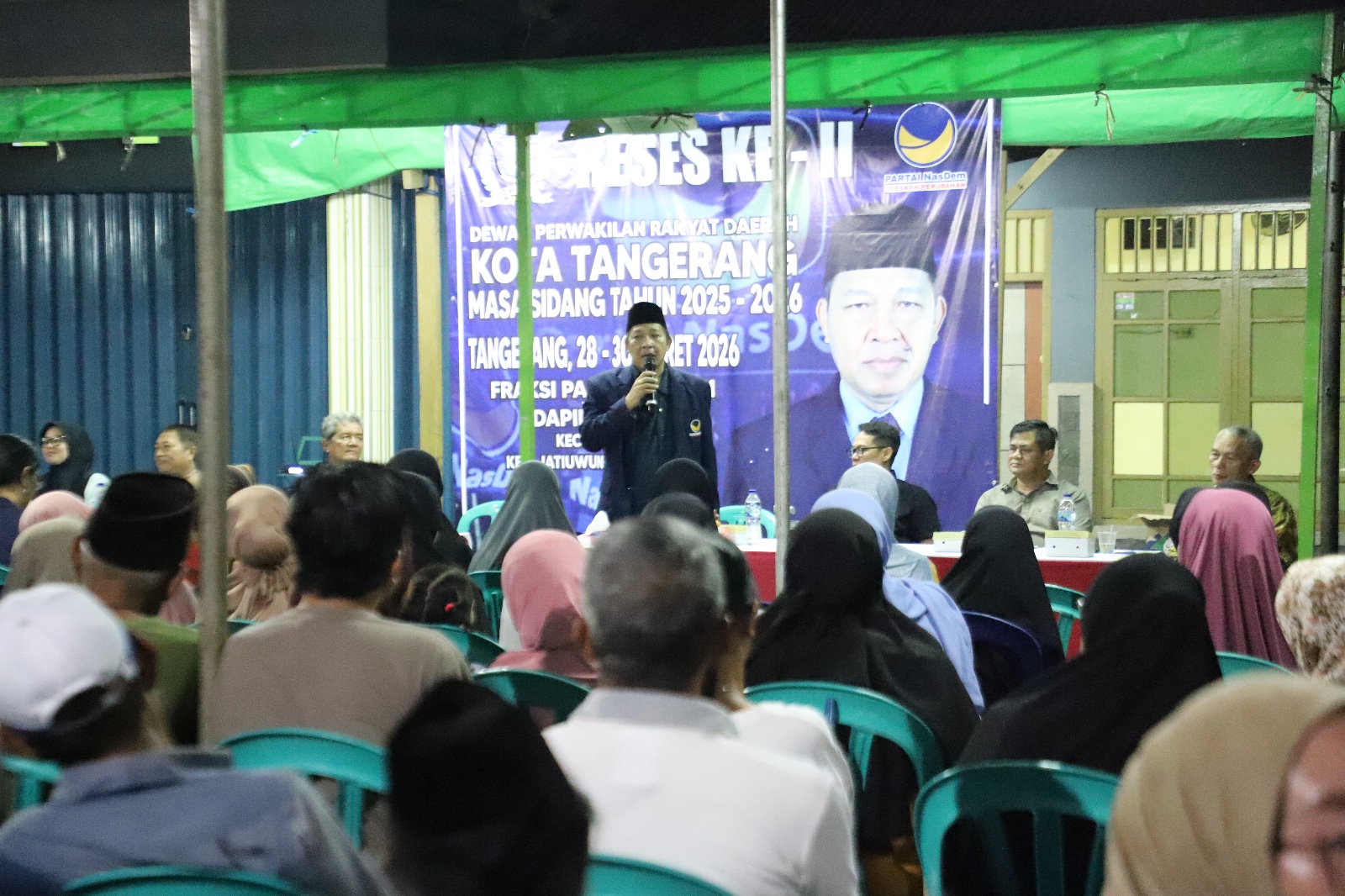 Anggota Dewan Perwakilan Rakyat Daerah (DPRD) Kota Tangerang, Dedi Candra Wijaya, membahas masalah pengangguran pada Reses I Tahun 2021 – 2022, yang digelar di RW 02, Kampung Ledug, Kelurahan Alam Jaya, Kecamatan Jatiuwung, Sabtu (27/11)..